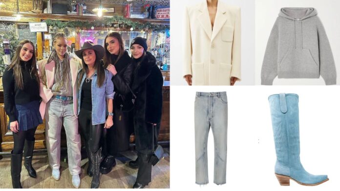 Rihanna Posed with Kyle Richards and Family in a $4,500 Cream YSL Blazer, a $3,500 Grey Bottega Cashmere Hoodie, $855 Light Washed Balenciaga Jeans, and $575 Blue Suede Kemo...